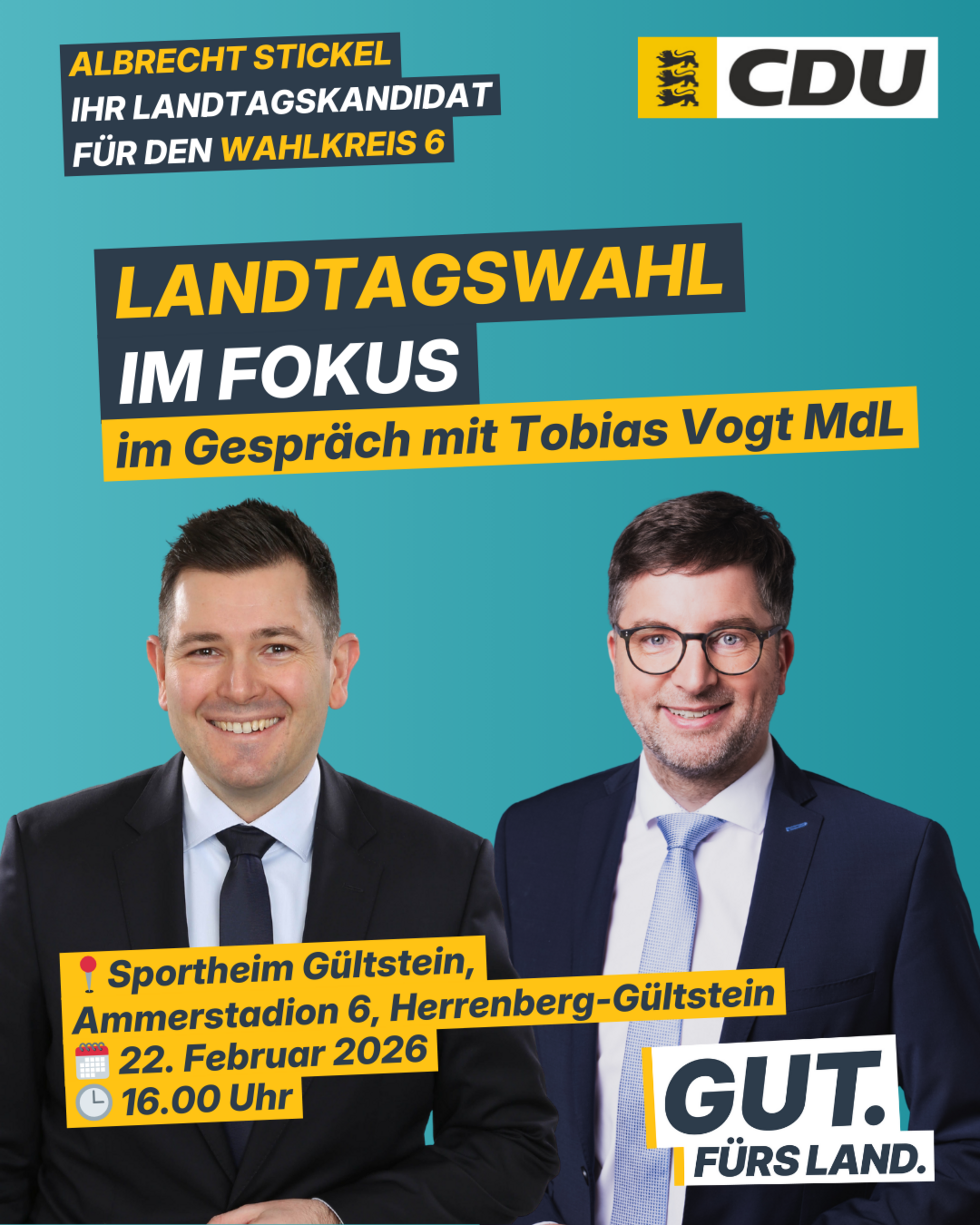 Der Landtagskandidat für den Wahlkreis 6 Leonberg–Herrenberg, Albrecht Stickel, lädt herzlich zu einer öffentlichen Veranstaltung ein.